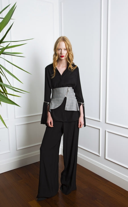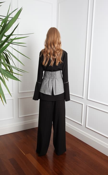 Garment: 50% Viscose 50% Polyester Corset with zipper and elastic band at back.