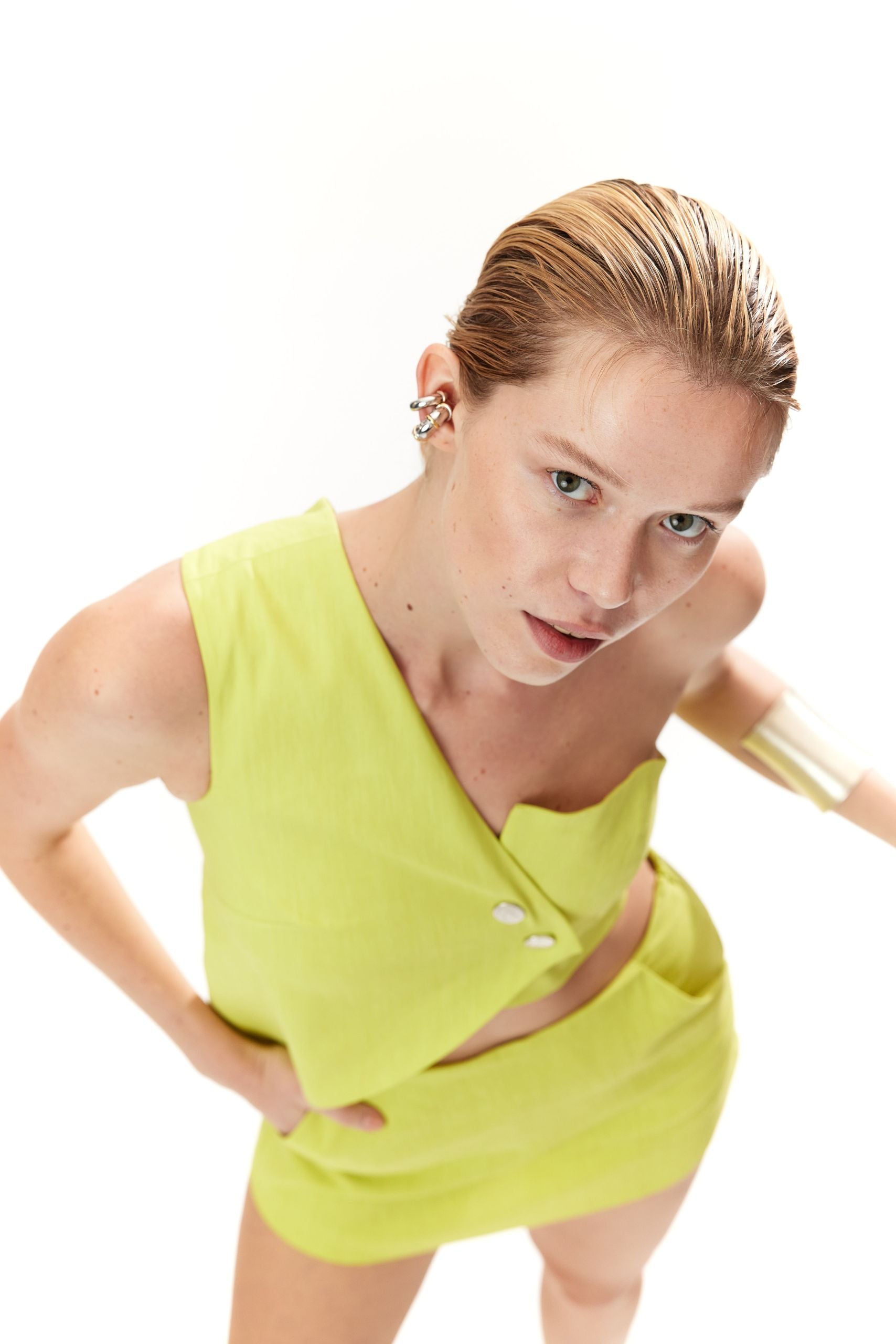 Made of vibrant yellow-green shade linen-blend fabric