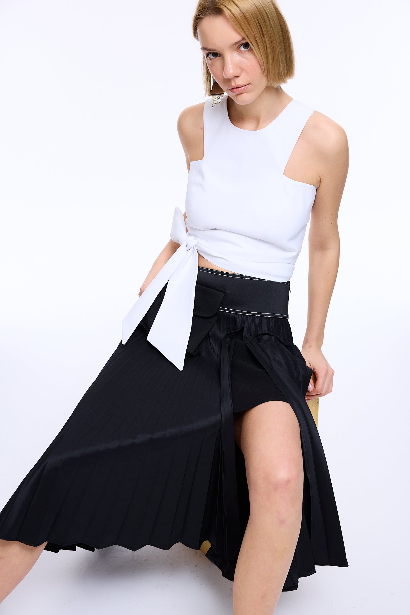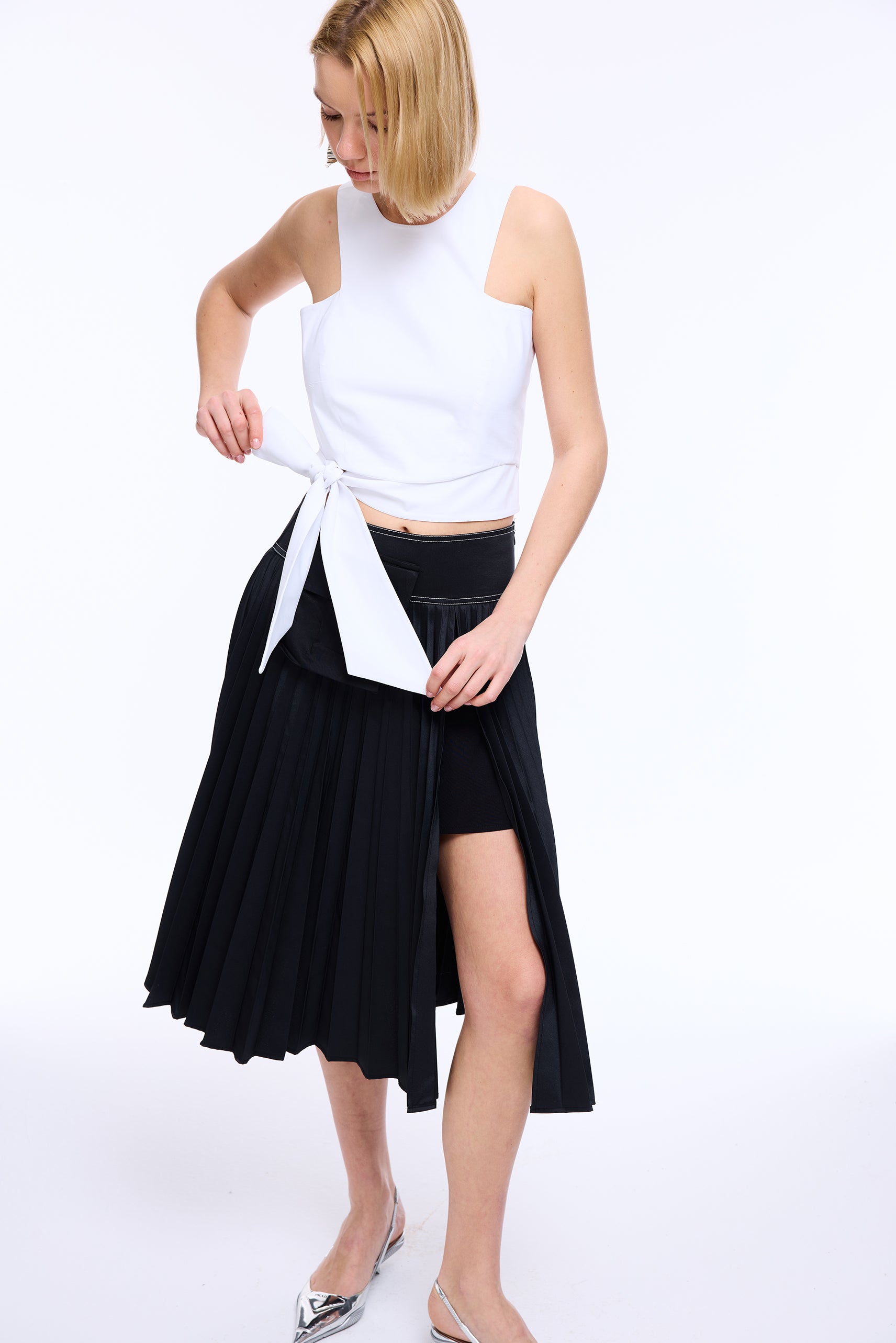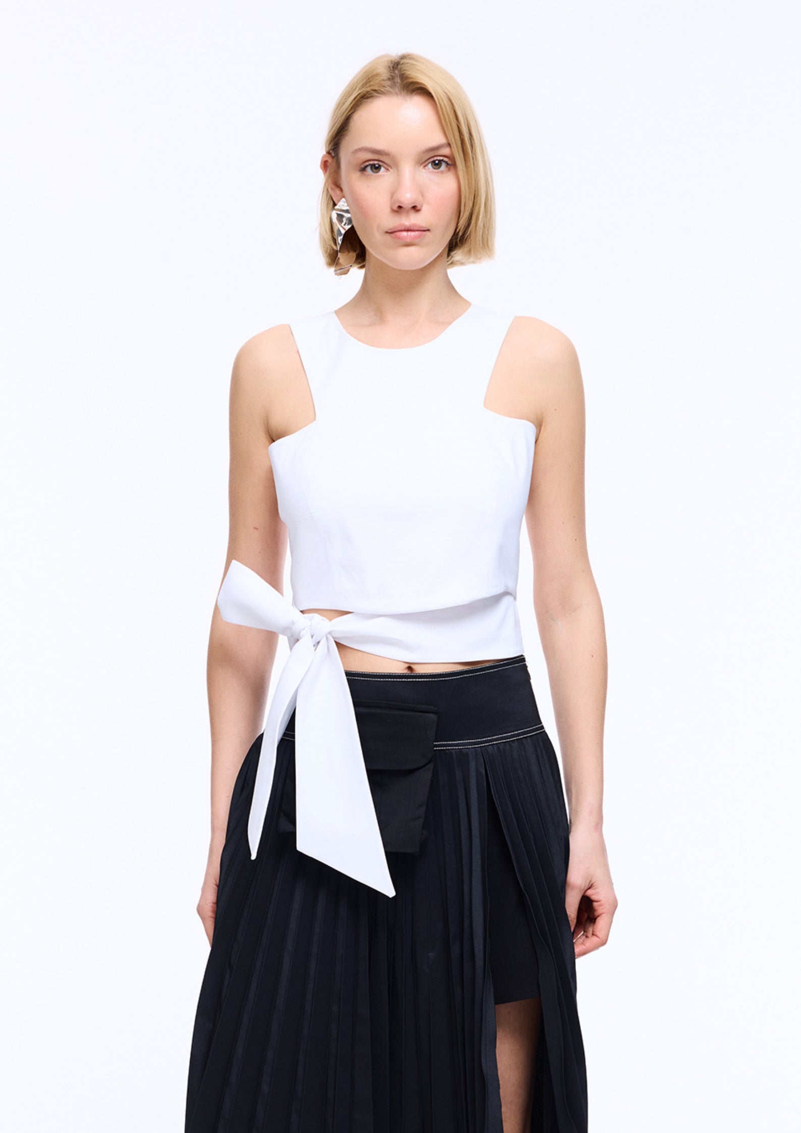 This versatile crop top can be styled in two ways—wrap it around the waist for a fitted look or wear it open and let the fabric flow at the back