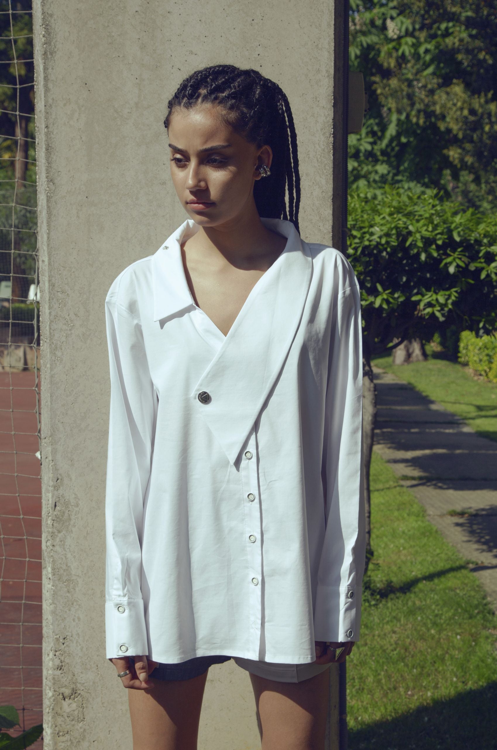 Oversize white cotton poplin shirt