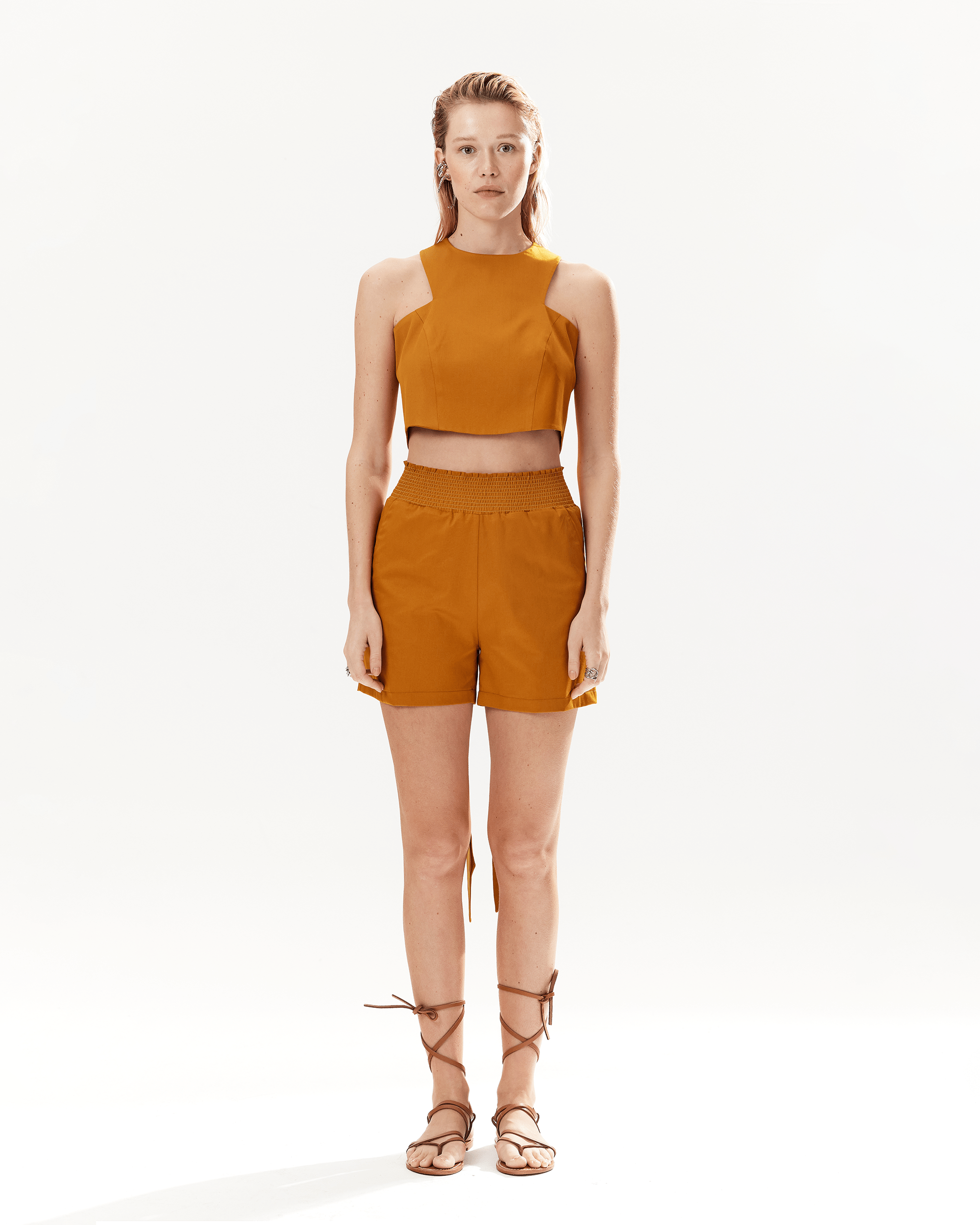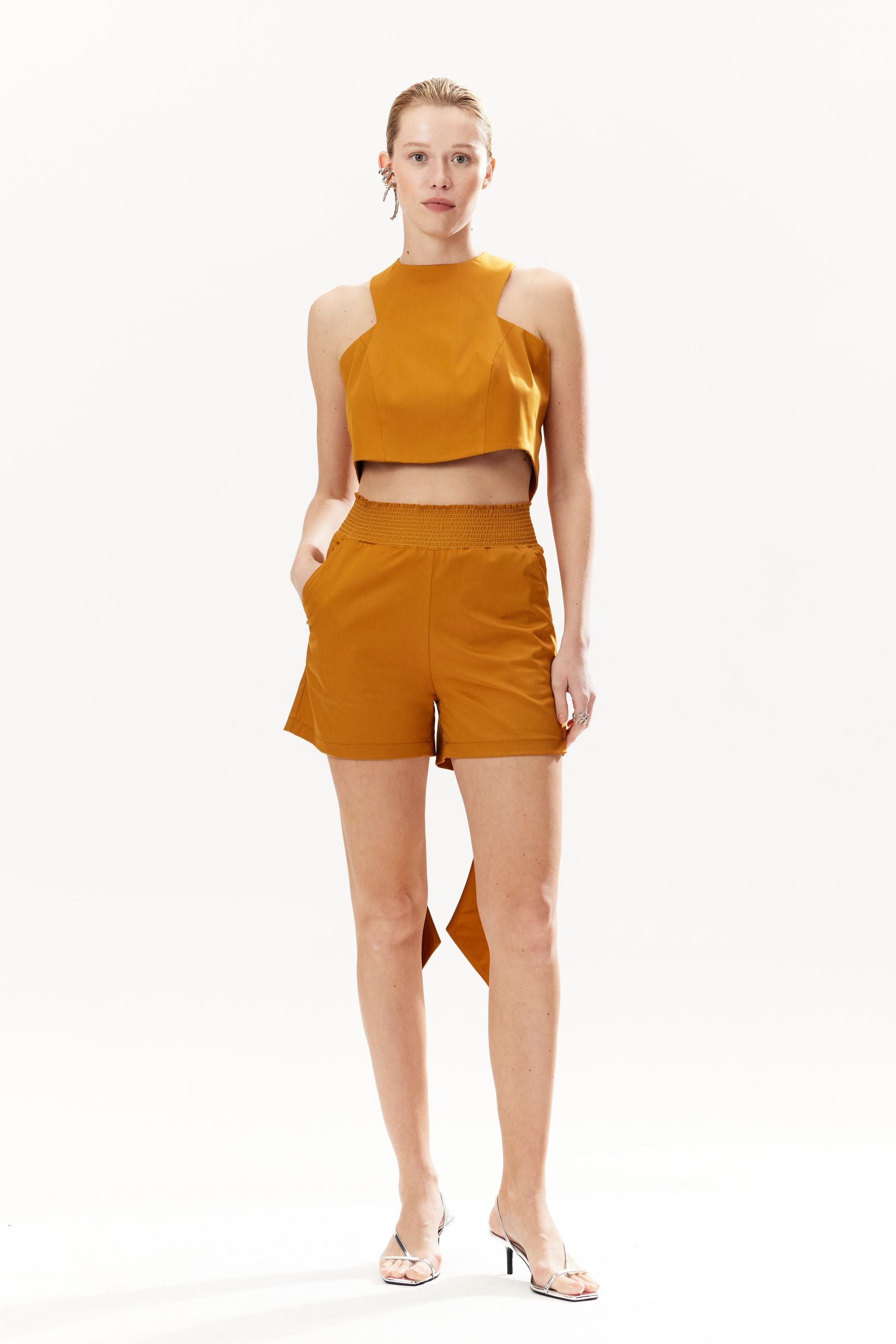 These shorts are made from cotton-satin and have a wide elasticated waistband for added comfort Two side pockets Style tip: combine with "Cinnamon Shirt" or "Cinnamon Wrap Around Top" 97% Cotton 3% Elastane S: 34-36 EU M: 38-40 EU