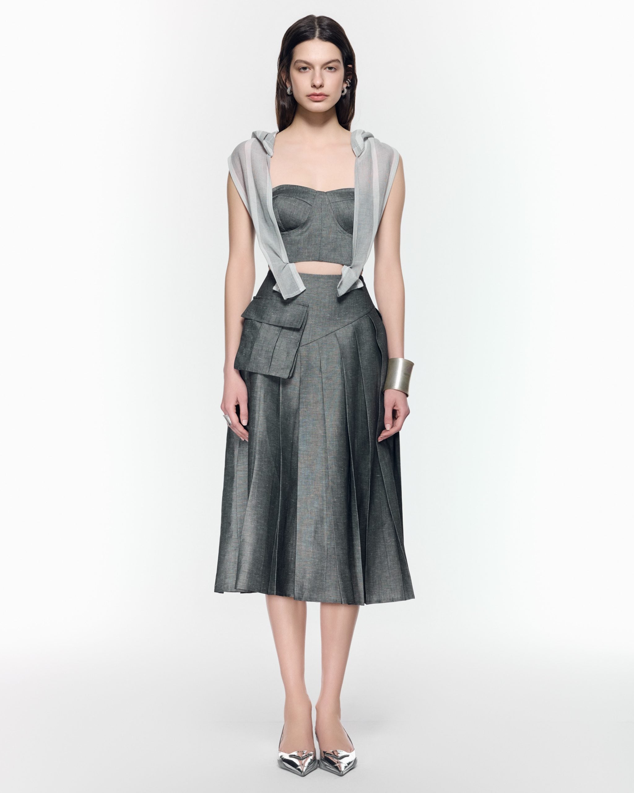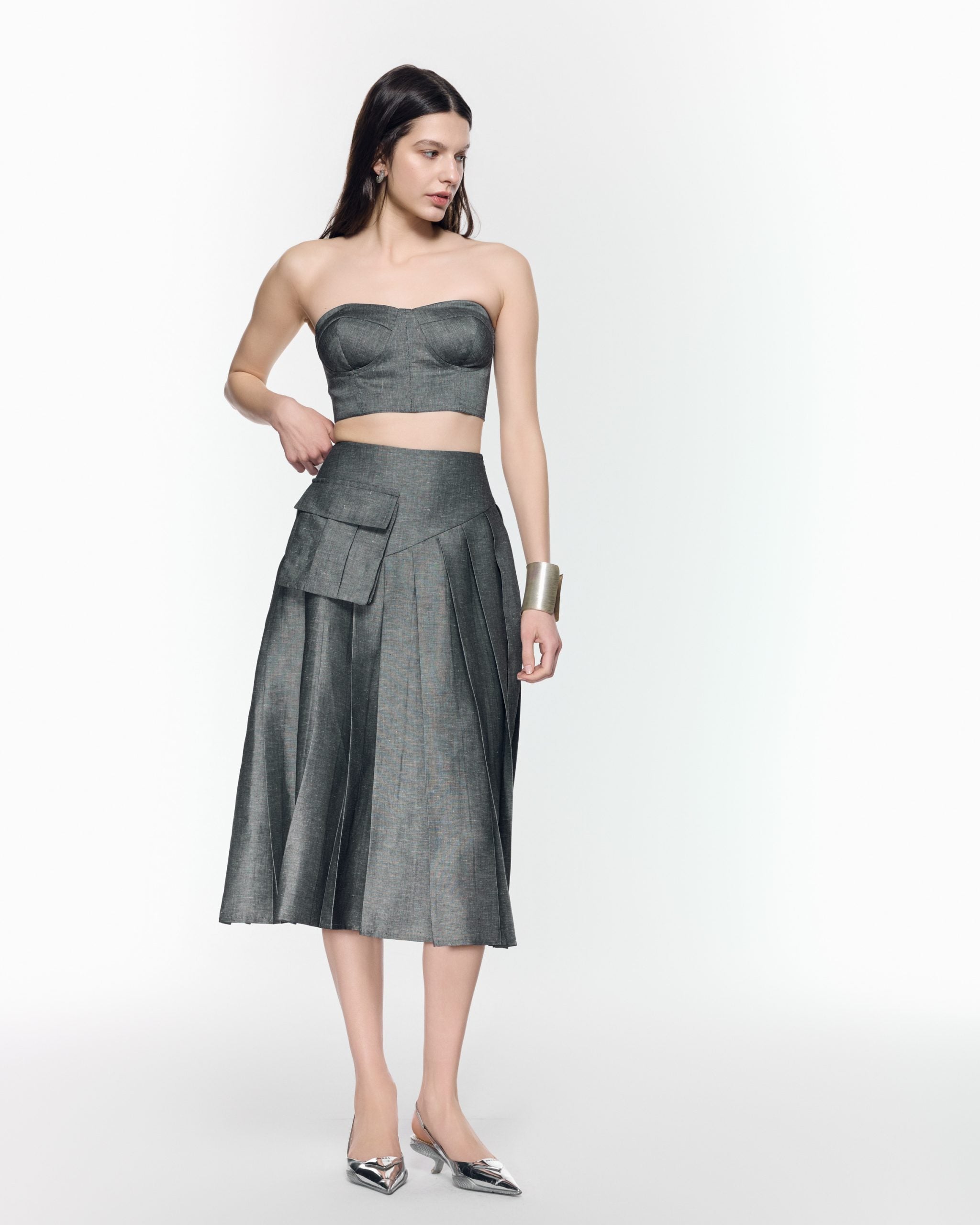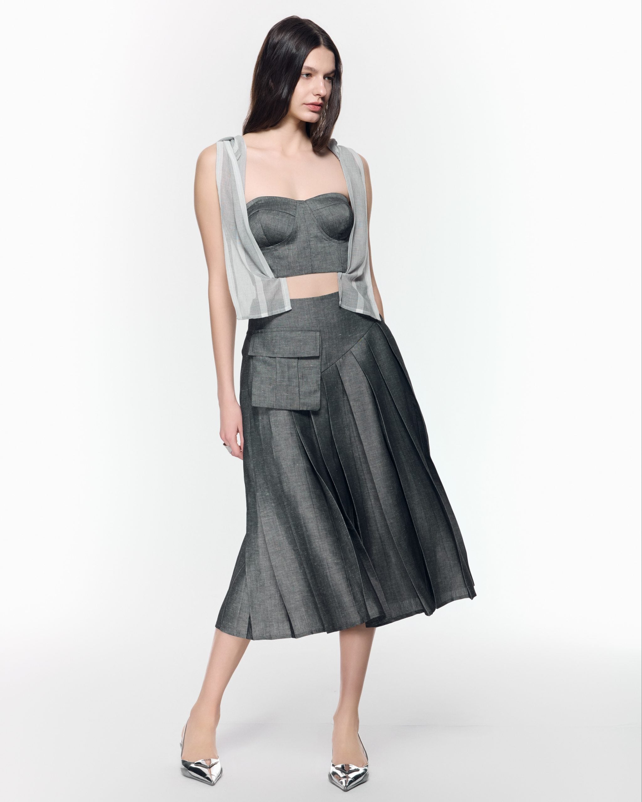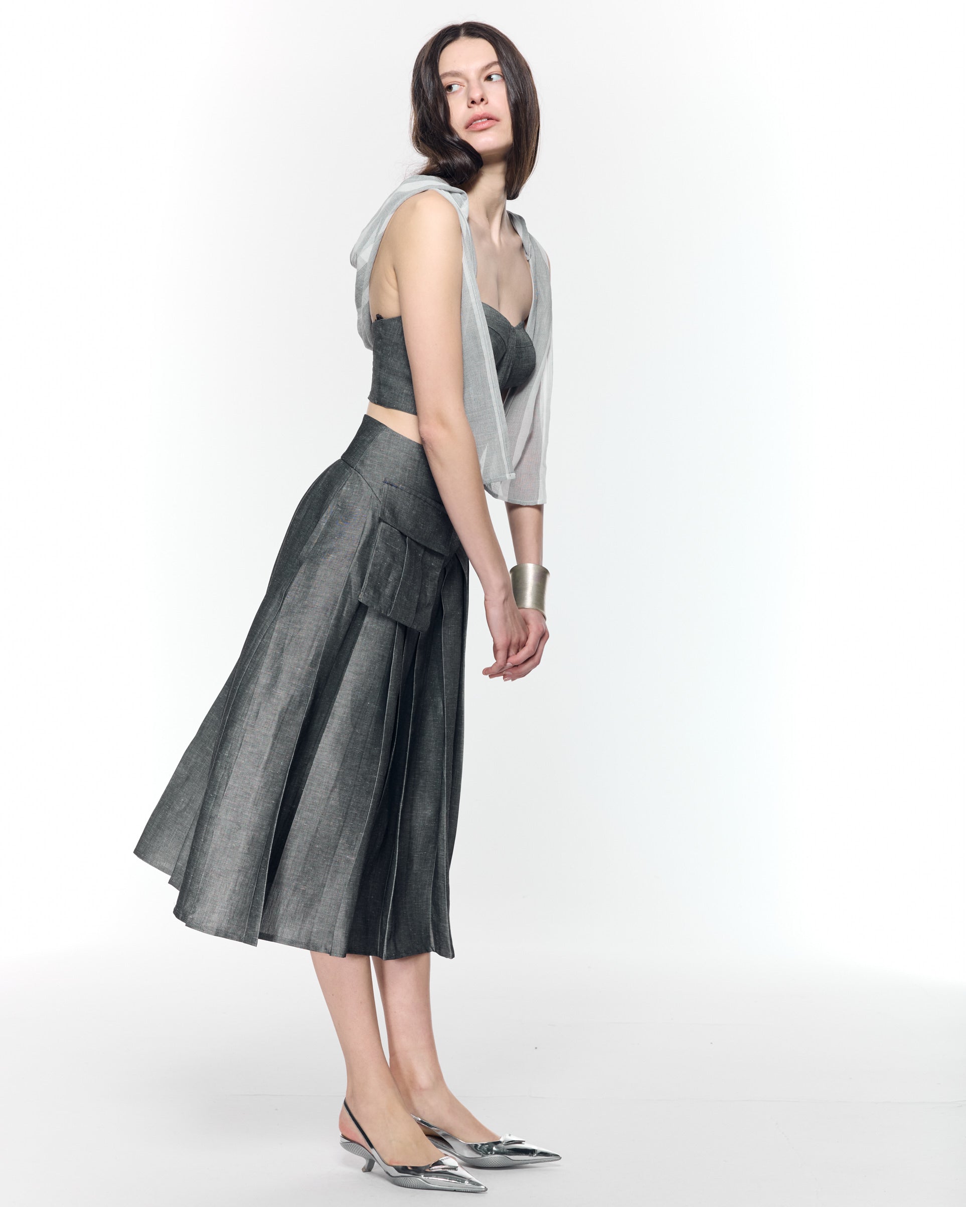 Made of linen blend fabric, this skirt is pleated throughout to create a voluminous shape and beautiful swing when you move