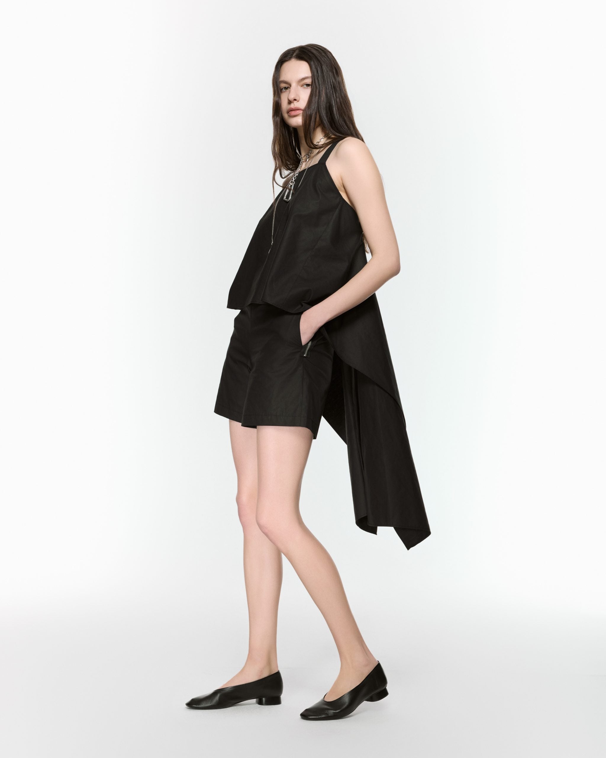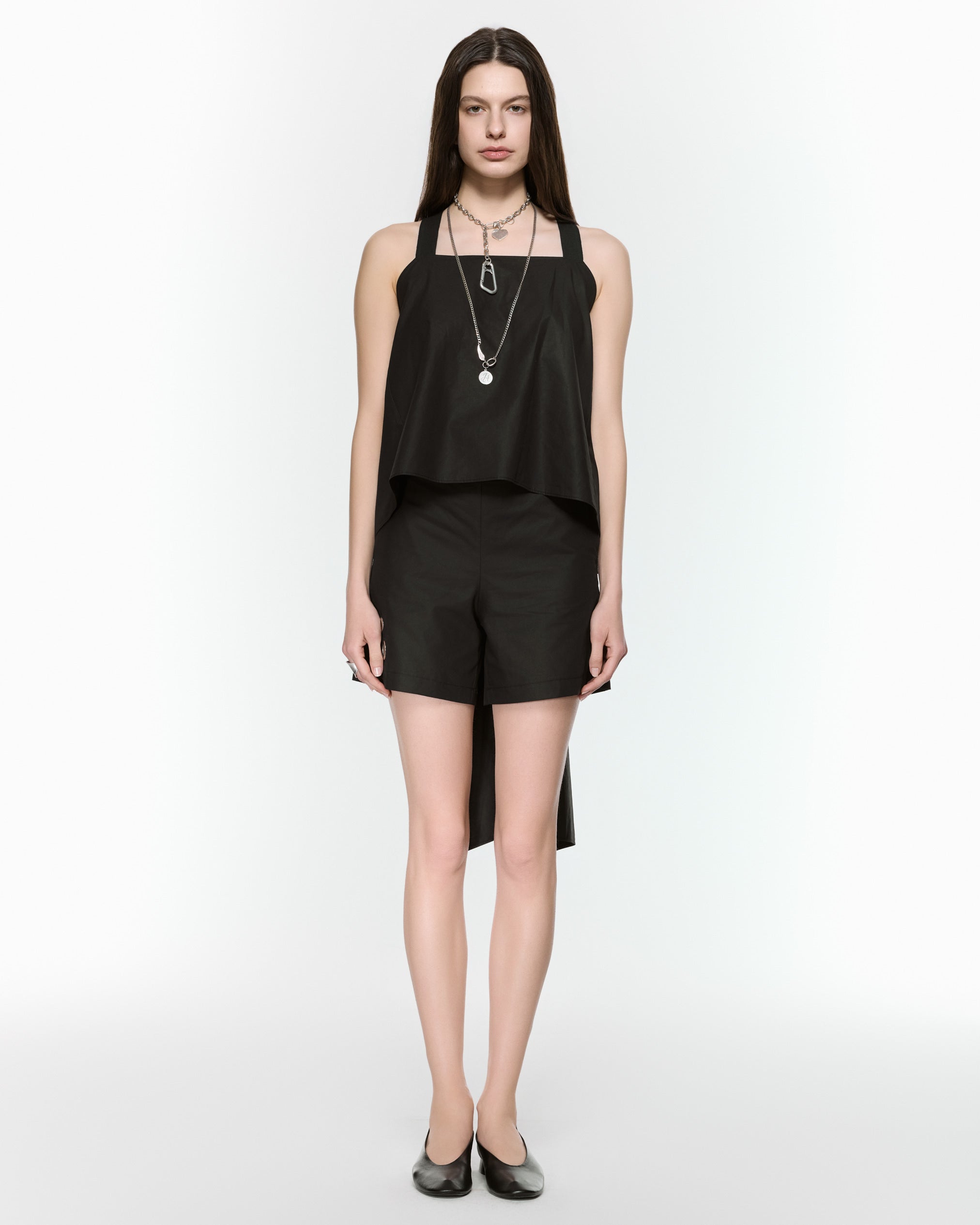 A simple crispy black cotton top has a striking back One size fits all with adjustable straps