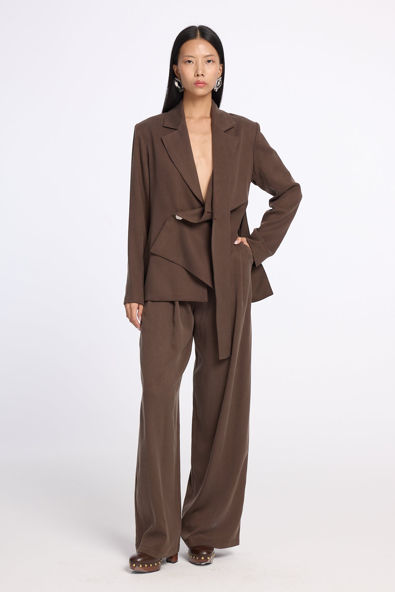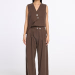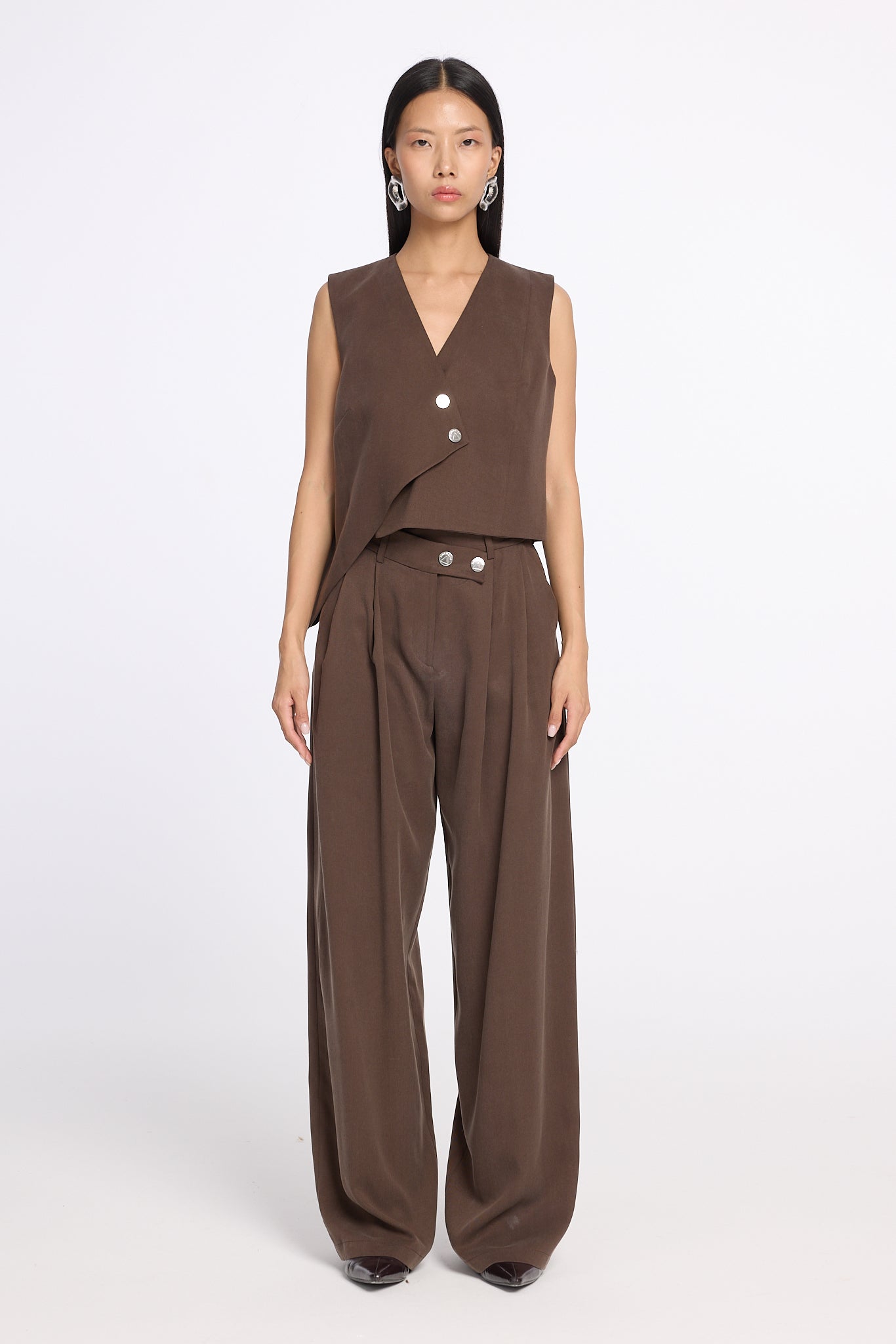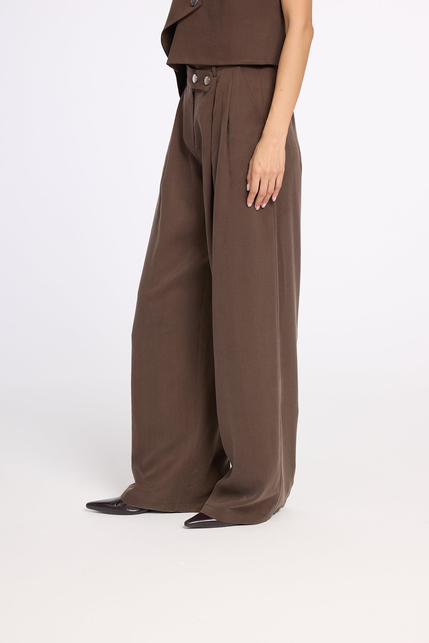 Tailored from silky-touch lyocell, these pants fall in a fluid, full-length maxi cut. Defined by sharp pleats and embellished with cross silver studs, they balance elegance with a modern edge.