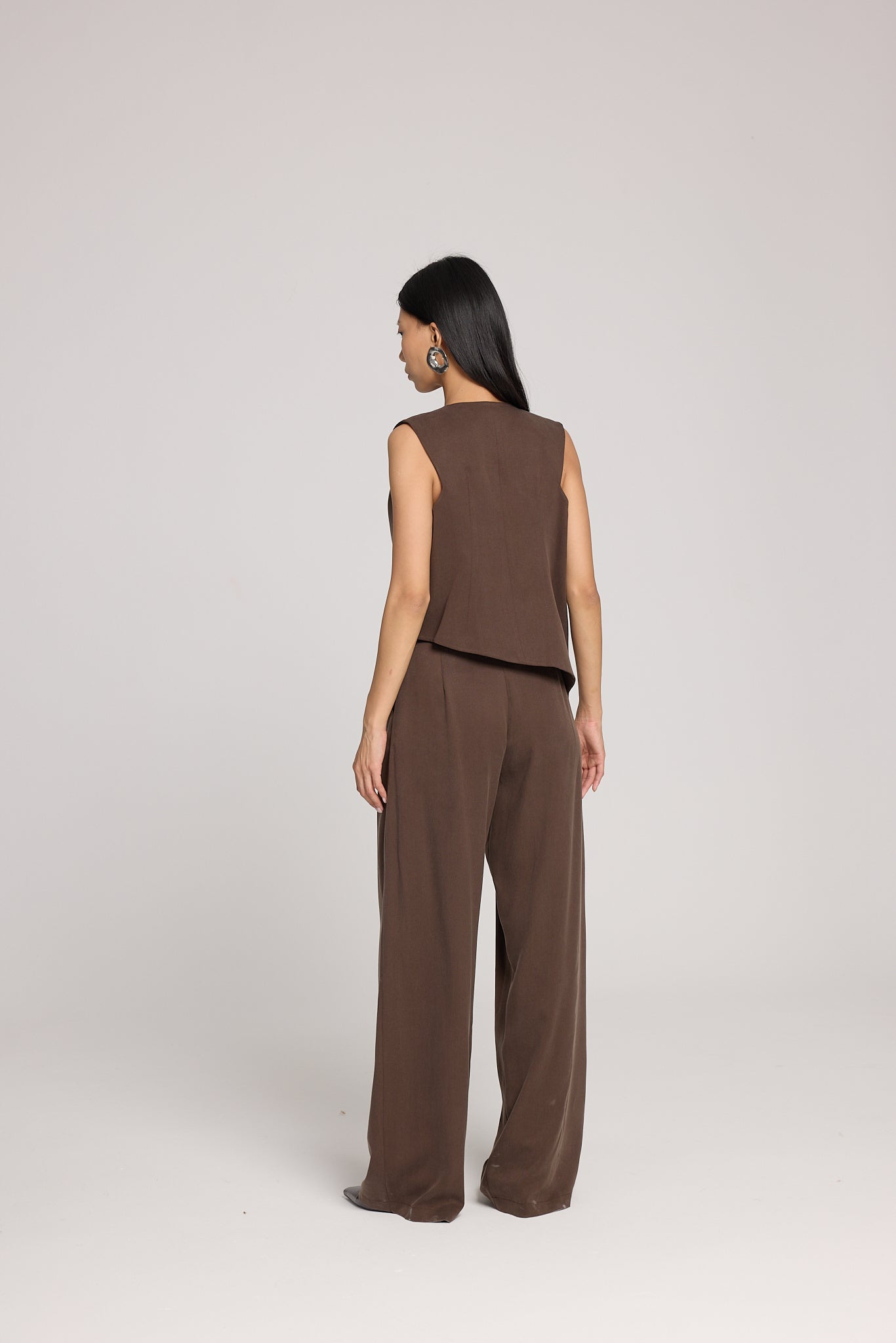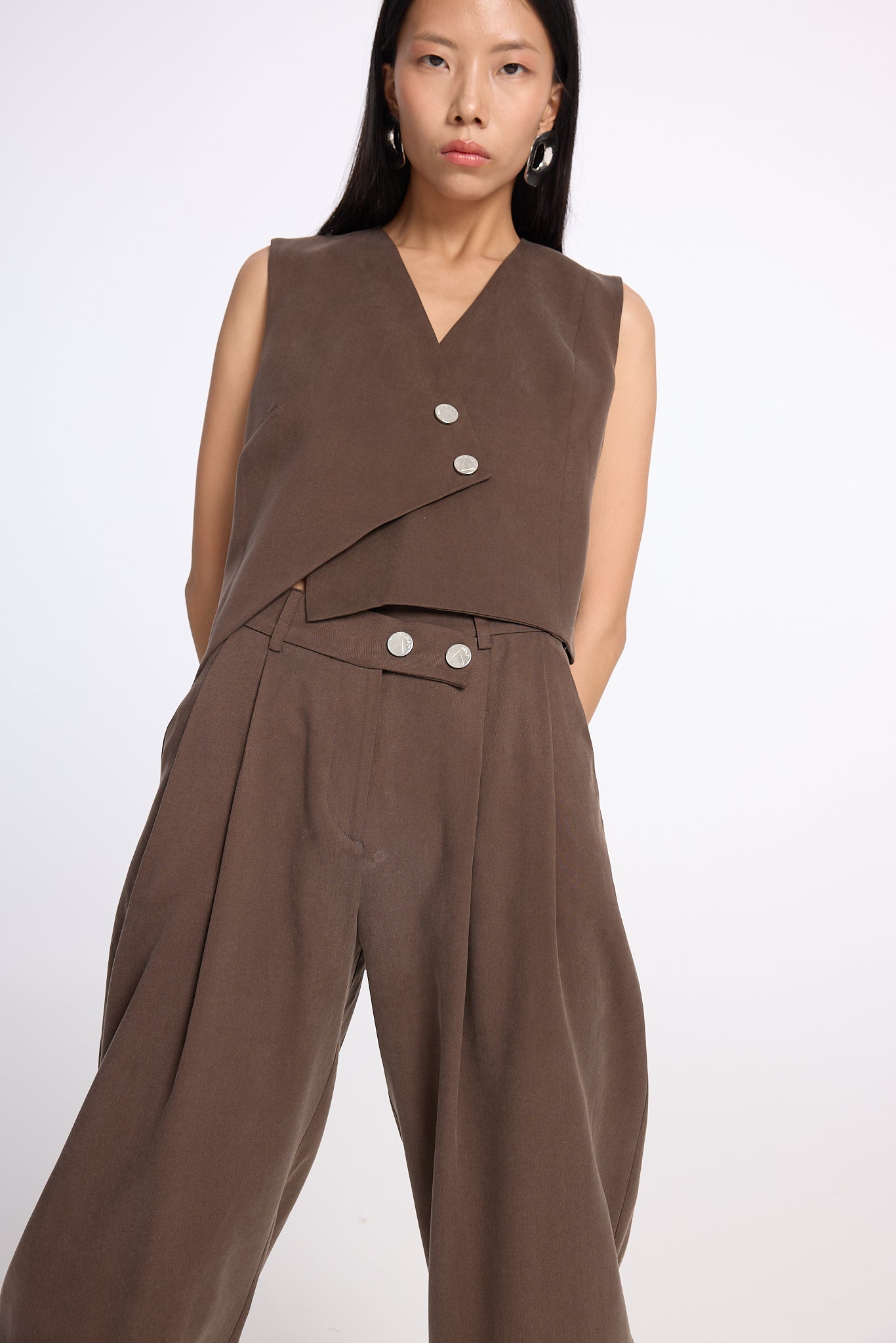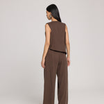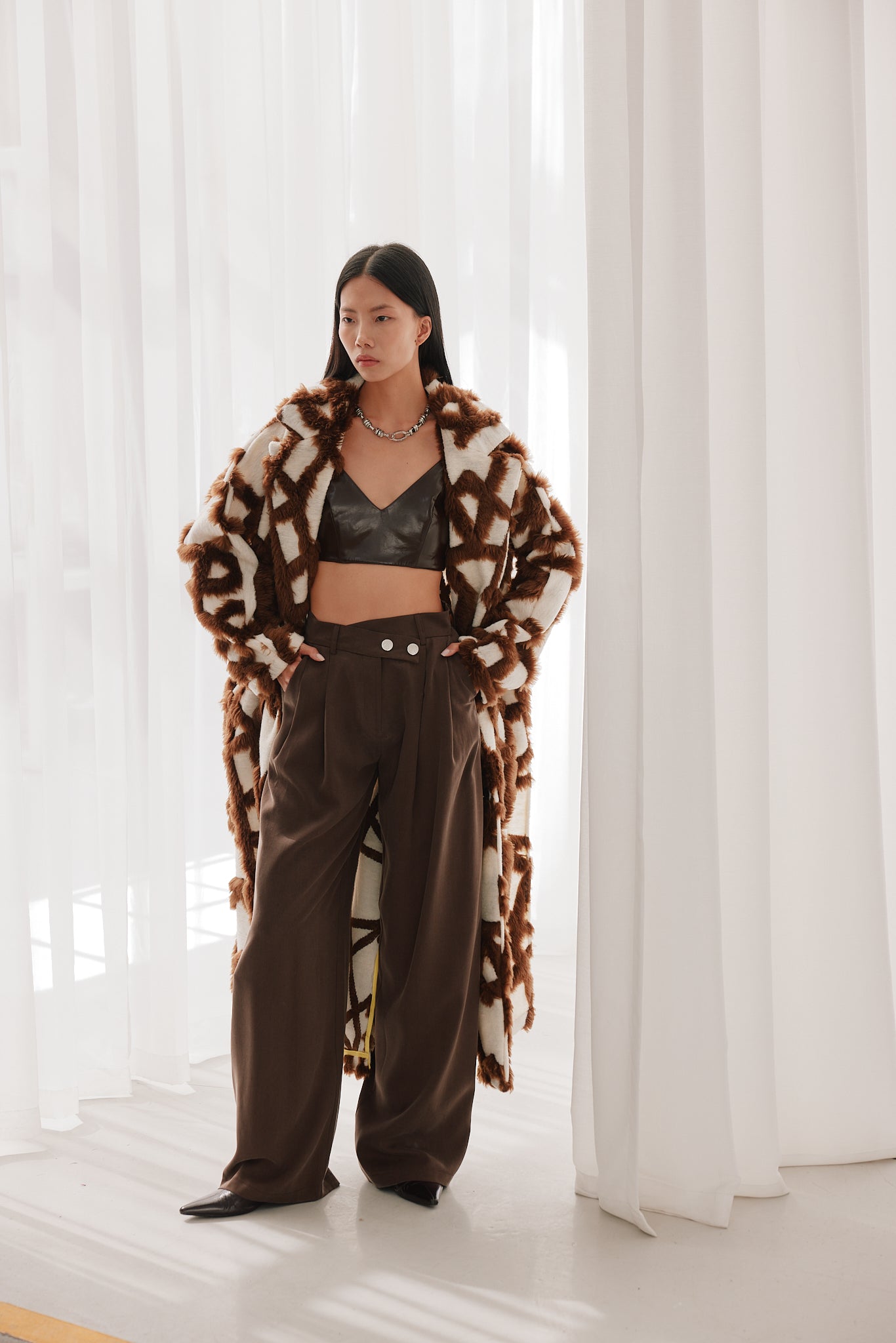Tailored from silky-touch lyocell, these pants fall in a fluid, full-length maxi cut. Defined by sharp pleats and embellished with cross silver studs, they balance elegance with a modern edge.