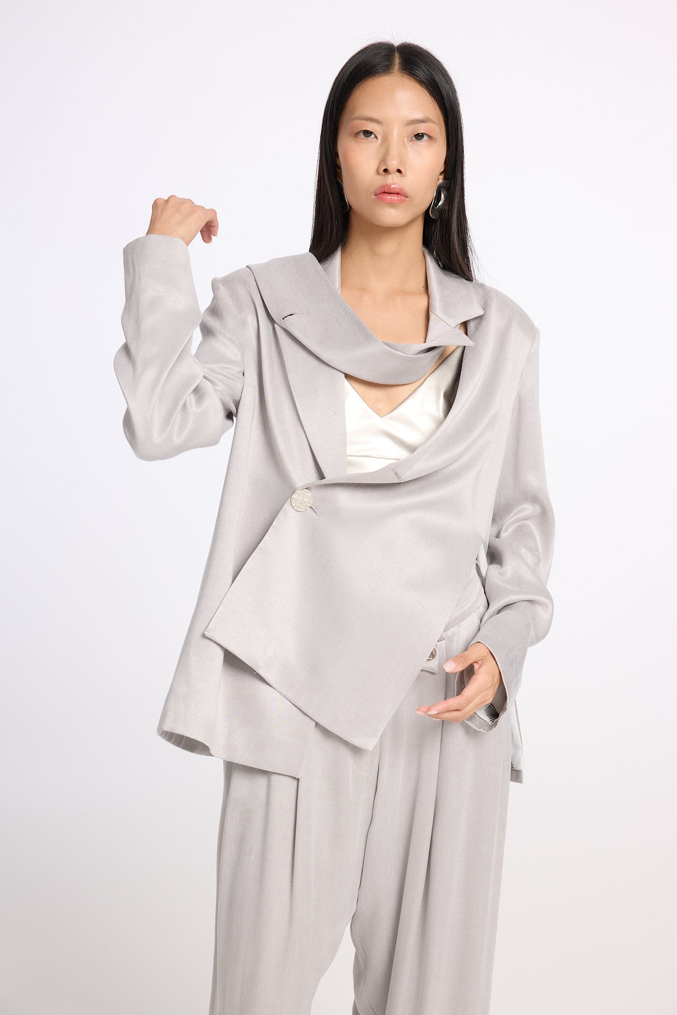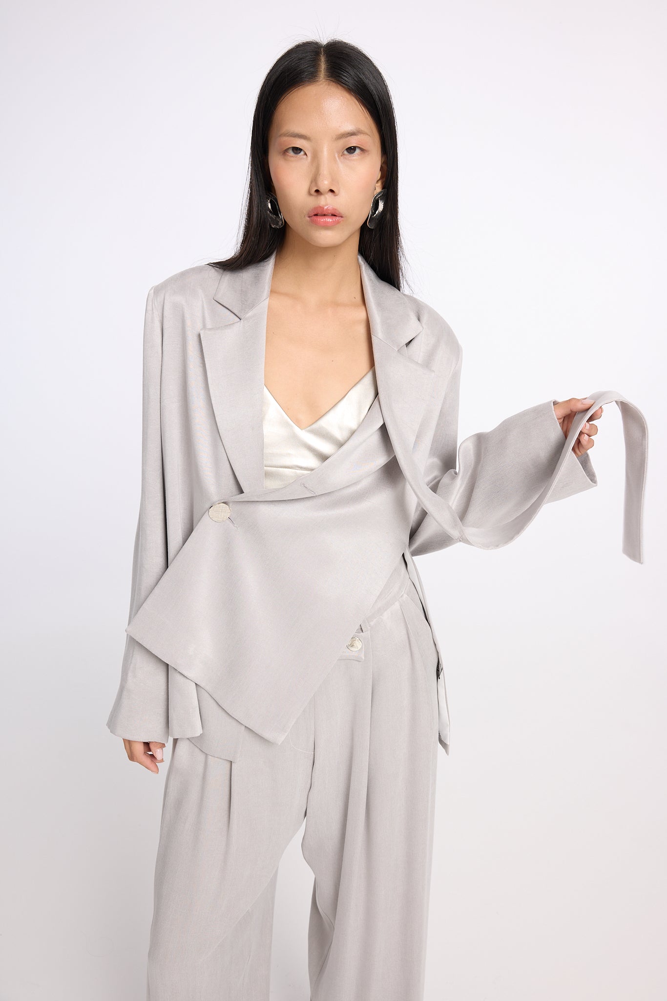 Introducing the Multi Connect Jacket—a versatile piece designed to transform with your mood. Tailored to be worn in 3–4 distinctive ways, it moves seamlessly from polished sophistication to avant-garde ease. Tie it with precision for a classic silhouette, or drape it asymmetrically for an artful edge. One extended collar flows like a scarf, inviting endless possibilities for creative styling.